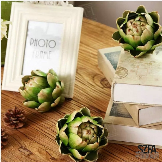 洋薊形態(tài)優(yōu)美,整個洋薊就是一朵花,是鄉(xiāng)村風(fēng)格常用的裝飾小物。兩種顏色搭配擺放更是賞心悅目!
