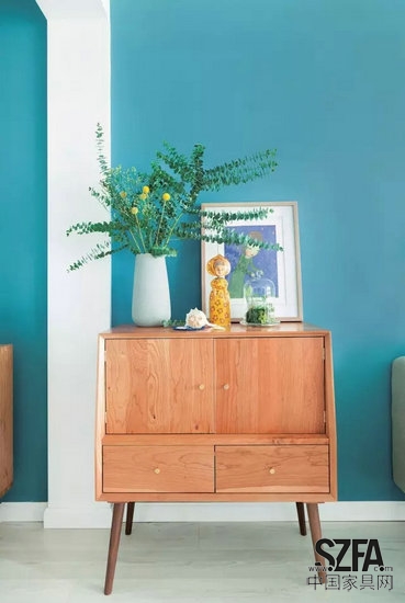 對(duì)色彩,自小喜愛并擅長(zhǎng)繪畫的Rita很有一番思索:“家居裝飾中的用色繁不如簡(jiǎn),除非是對(duì)色彩既敏感又具有超強(qiáng)把控力的大牛級(jí)人物,否則貪心則亂。以我喜歡的北歐風(fēng)為例,地板和墻體多是最簡(jiǎn)單的黑、白、灰,然后通過家具、飾品適量帶入彩色就好。很想有些大面積的色彩表現(xiàn)時(shí),也可以從嘗試灰度較高、明度較低的內(nèi)斂低調(diào)色彩著手,比如我愛的這塊灰藍(lán)色墻面。”