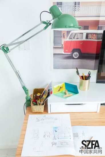 在這個(gè)家中走上一圈,就能猜出Rita和Berry大致的興趣愛好。戲稱自己是“直面現(xiàn)實(shí)的屌絲”的Berry,最喜歡窩在沙發(fā)中看日劇和球賽等,于他而言,客廳是舒適愜意、安穩(wěn)自在的。而典型的文藝女青年Berry最愛的是書房,除去和先生耳鬢廝磨的時(shí)光,她也愛獨(dú)自在這里,坐在電腦前看美劇,坐在畫架邊提筆作畫,而書柜的玻璃門后,安放著她最衷愛的照相機(jī)。