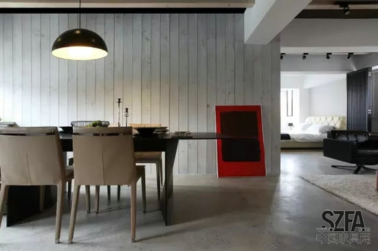 設(shè)計師保留原建筑之結(jié)構(gòu)天花、磚墻、壁爐,取實木,拼成仿舊味濃烈之造型;置水泥,抹出一處溫潤沉穩(wěn)的灰色調(diào)地坪,在新與舊之間,塑造出無可取代的平衡感。