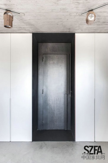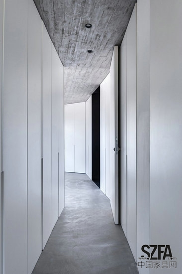 設(shè)計(jì)師在設(shè)計(jì)業(yè)主夫婦的房間時(shí)又使用了另一套全新的建筑語(yǔ)言,將這一區(qū)域同其他區(qū)域分割開(kāi)來(lái)。純白色的進(jìn)入式壁櫥、素混凝土浴室和主臥室營(yíng)造出沉靜、樸素的氣質(zhì)。