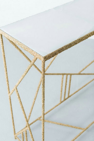 色彩各異的寶石和金屬被研磨分解成細碎的顆粒,再粘貼到支撐結(jié)構(gòu)和桌面之上。幾何化的簡潔結(jié)構(gòu)和豐富的材質(zhì)肌理形成了有趣的反差,凹凸不平的表面帶來了明顯的觸感。無論單獨放置,抑或多款組合,這系列家具都將成為室內(nèi)空間的點睛之筆。