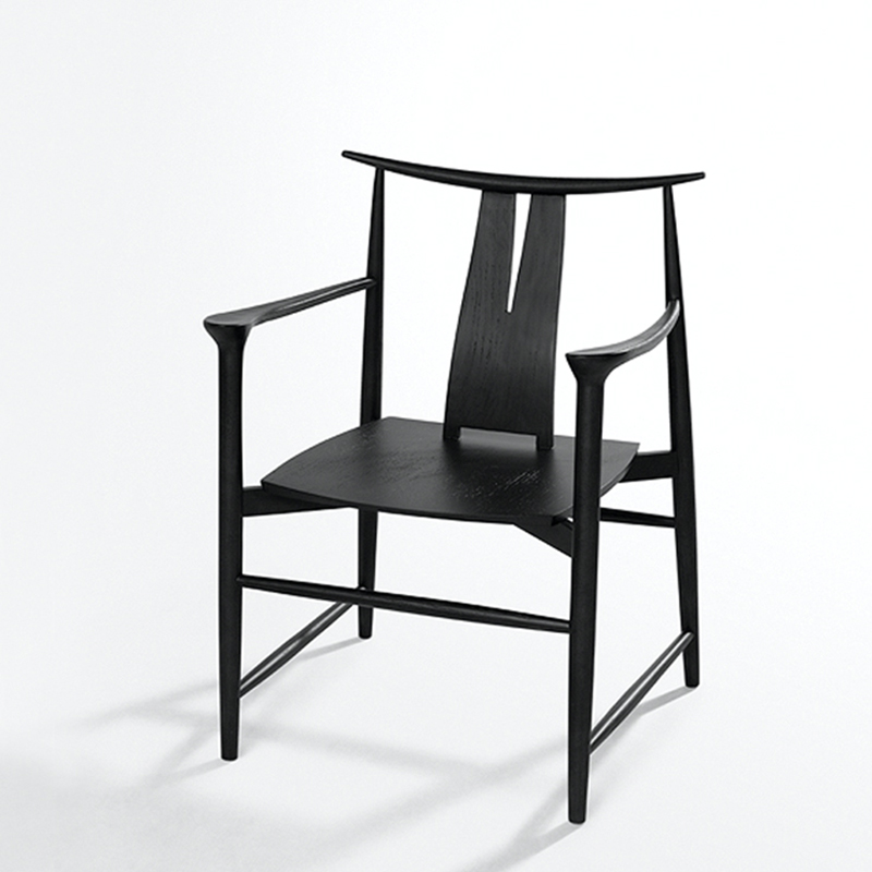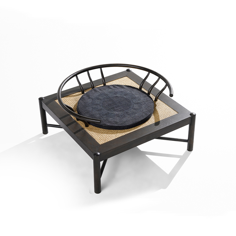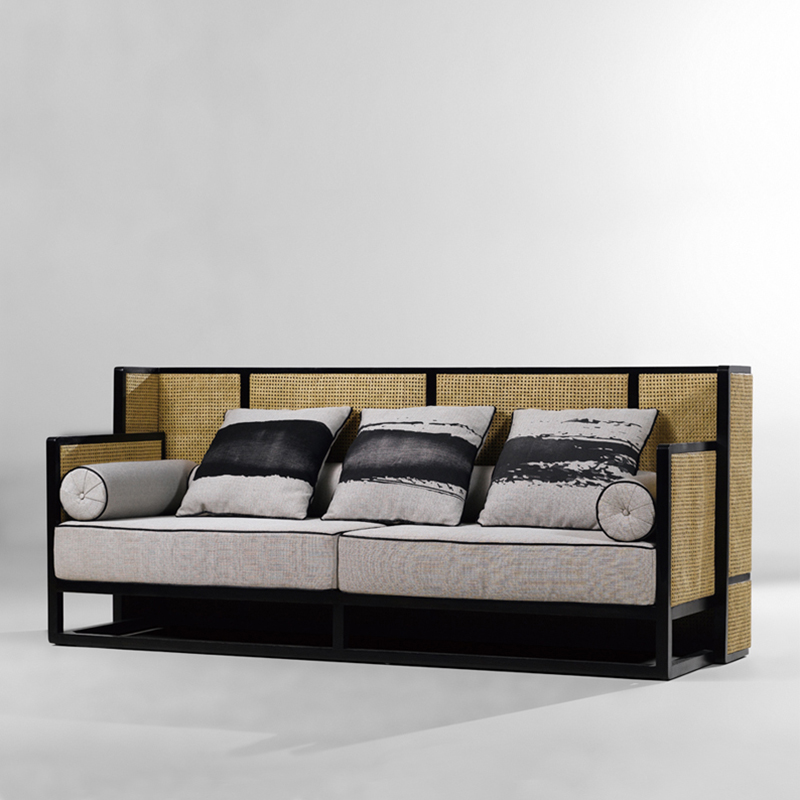 古人講天人合一,即自然與人相生、相融。此款沙發(fā)采用了極具東方風(fēng)格的高靠背形式,似中國(guó)傳統(tǒng)的圍屋概念。圍合,是中國(guó)人傳統(tǒng)的居住形式,也具華夏文明的“合”文化。色彩采用了黑灰兩色,顯穩(wěn)重大方。“一”字的書墨印紋,體現(xiàn)了道家的逍遙思想理念,以“一”字概括了自然萬物的統(tǒng)一性。
