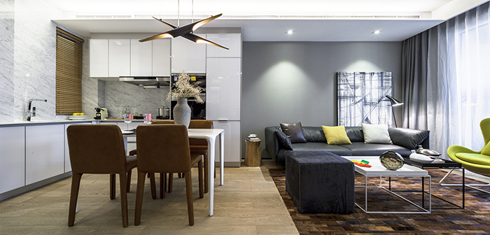 當(dāng)小戶型遇到高級(jí)灰,這種有范兒的調(diào)調(diào)完全沿襲了方磊個(gè)性時(shí)尚的設(shè)計(jì)DNA。