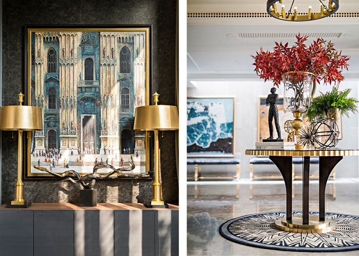 Interior furnishing and designing continue the neo-classism styles of the building and house internal, while basing on such to exhibiting inclusive space of aesthetic powers. The designs block out vague image of forms and labels, and emphasize to match the style with lifestyle of the wealthy group, thus promoting sole visible appeal of power and fortune to be needs for morality, order, joys and warmth in life, therefore presenting touching details in living space.