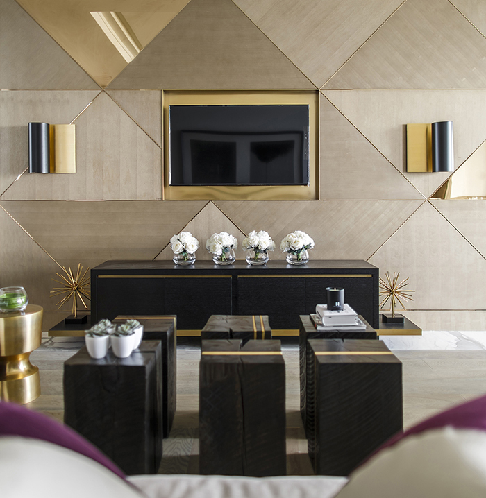 Hoppen's unparalleled style and expertise made her the perfect fit for the Shenzhen Project. She flawlessly captures the awe-inspiring nature of the building by playing with textures and mixing beaten metals with different marbles, woods, golds and natural materials. Furthermore, her use of iconic pieces, seductive vintage furniture, statement pendant lighting and tasteful accessories result in something truly spectacular and effortlessly elegant.
