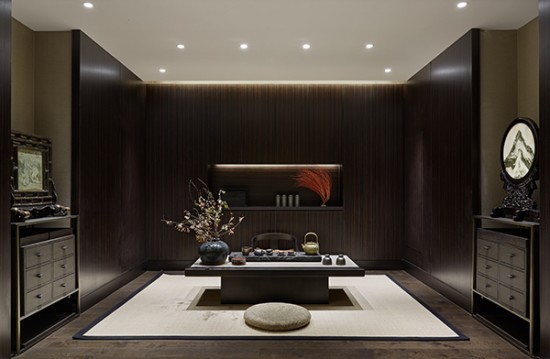 以茶待客,乃古代人情交際的禮節(jié),它為友人之間帶來一種清幽雋永的意境,更被視為風(fēng)雅之事。故此,負(fù)一層設(shè)禪茶室,供長日清談、寒宵兀坐。