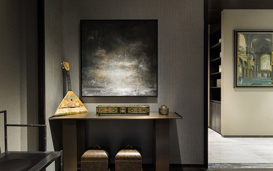 步入客廳,莫里加的《夜溪》就將攝取你的心魄,他筆下的山巒,氣象萬千,延展出無窮無盡的意象。一深一淺兩座長沙發(fā),與地毯的跳脫形成對比。一組小葉紫檀南官帽椅,價值非凡卻又內(nèi)斂沉靜,所謂“大音希音”也許正是如此。