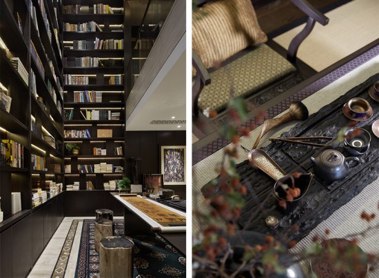 打通負(fù)二、負(fù)三層,以為書房,一面挑高6.5米的書墻,可藏書6000余本,是書香門第世代相傳的智慧。