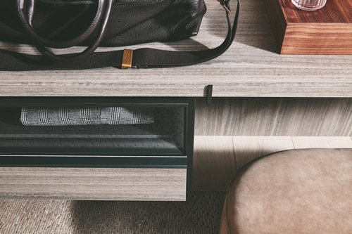 Gliss Master系列衣柜由比利時(shí)設(shè)計(jì)師Vincent Van Duysen于2016年設(shè)計(jì)完成:除了擴(kuò) 大GlissMaster系列衣柜的使用空間之外,還使其具備了更高端的特征,讓衣柜成為真正的“主角”。創(chuàng)新的結(jié)構(gòu)飾面(Raffia),背板(Fine Grain或Raffia)和柜門(mén)(Graffiato Bronzo或Silice)。全新的全玻璃材質(zhì)支架,裝配在已安裝專利180°開(kāi)合鉸鏈的金屬框架當(dāng)中。柜門(mén)(玻璃)和透明玻璃背板的組合構(gòu)成了這座全玻璃材質(zhì)衣柜。木質(zhì)或漆面柜門(mén)上,安裝了全新的把手(鎳材質(zhì))。家具的抽屜部分采用了全新的懸掛和雙面設(shè)計(jì),安裝有一只拉手(Hold),正面則采用了人造皮革或Fine Grain飾面。全新的人造皮革和玻璃擱板上,可選裝LED照明燈。印花支架上的Fine Grain是一款全新、豐富且獨(dú)特的涂漆飾面,可用于背板和抽屜的正面。Molteni&C的獨(dú)特設(shè)計(jì):從金色底座開(kāi)始,將采用5層加光和特殊中間通道工藝的涂漆。