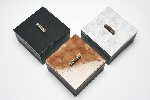 各種形式的作品以不同的漆器色彩呈現(xiàn)出多樣的美感。青銅的金屬、雞蛋殼的觸感、金葉子急客套的裝飾,讓產(chǎn)品展示形式純粹而又精致。