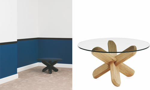 Inspired by ancient three-dimensional wooden brain teaser puzzles, the German designers Rudolph Schelling Webermann have created a simple coffee table that is assembled without the help of screws and tools. The table consists quite simply of three legs made from oak. When put together they constitute a sculptural knot that works as the base for an exclusive glass tabletop.