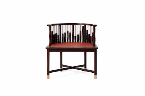 “算椅”是歲集的一個(gè)早期作品,有強(qiáng)烈的藝術(shù)裝置特性,也是歲集家具中最富有傳統(tǒng)中式味道的個(gè)別之一。黑檀木構(gòu)筑成明式椅子的造型,坐墊處貼上服帖精致的真皮皮面,座腳采用黃銅包裹來(lái)裝點(diǎn)。在背靠處裝入一節(jié)一節(jié)的算珠,有強(qiáng)烈的東方符號(hào)和裝置藝術(shù)的氣韻。