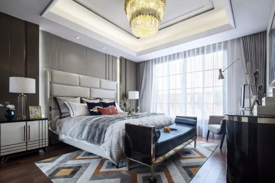主臥組合了絲絨面料、馬毛地毯、精致水晶、尊貴皮質(zhì)等現(xiàn)代元素,呈現(xiàn)出品質(zhì)生活的現(xiàn)代追求。設(shè)計(jì)靈感來(lái)自被譽(yù)為不夜城的“New York City ”,并巧妙介入都會(huì)元素,塑造出讓人迷戀的簡(jiǎn)潔、奢華與雅致,讓我們仿若置身紐約曼哈頓,沉浸在時(shí)尚優(yōu)雅的都市氛圍中,享受現(xiàn)代人心之向往的自由與灑脫。