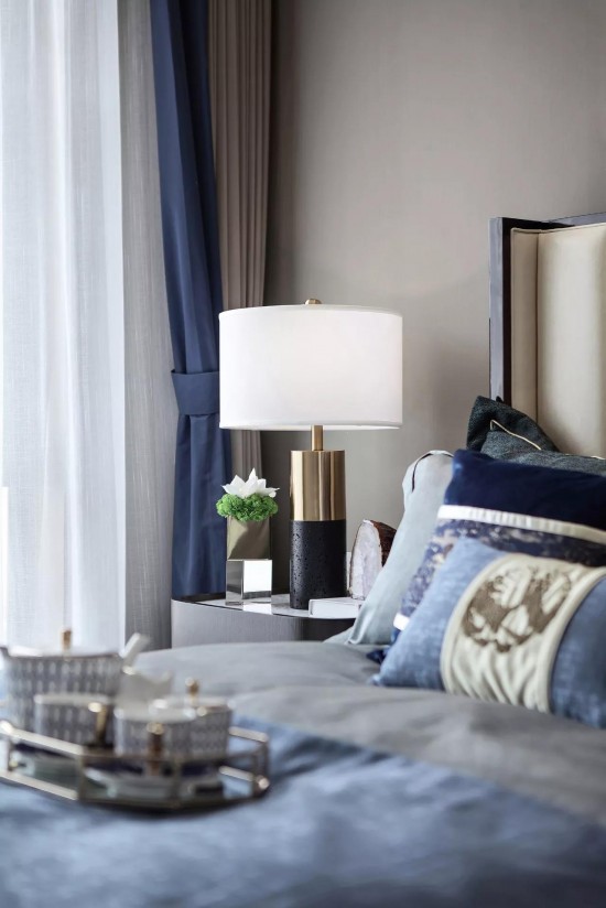 老人房設(shè)計(jì)平和淡雅,彌漫著靜謐安寧的氛圍。低調(diào)柔和的淺藍(lán)色調(diào),知性溫馨、大氣簡(jiǎn)約且不乏時(shí)尚的軟裝元素,詮釋著主人對(duì)美的品味追求與超凡脫俗的氣質(zhì)。細(xì)節(jié)處融入一些老舊物件的形制,使設(shè)計(jì)在復(fù)古中建立起一種明朗干凈的現(xiàn)代審美。