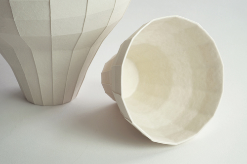 我希望通過折紙的方式來創(chuàng)造不同的結(jié)構(gòu)與空間,并利用陶土把結(jié)構(gòu)轉(zhuǎn)化為瓷器,把時間凝固,將本來脆弱和抽象的造型變成可用的器皿。