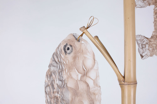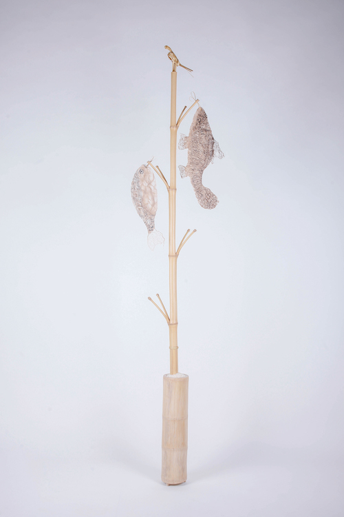 同時大同村作為有至少 500 年歷史的手工造紙村落,許多村民世世代代為紙工,與紙有著一種親切質(zhì)樸的羈絆。的在這件作品中設(shè)計師以紙為魚,以米為土,取魚米之鄉(xiāng)之意,結(jié)合竹創(chuàng)作出可觀賞可掛物的盆景式置物架,希望再現(xiàn)這里的人們生活中一份自然、樸素、的記憶。