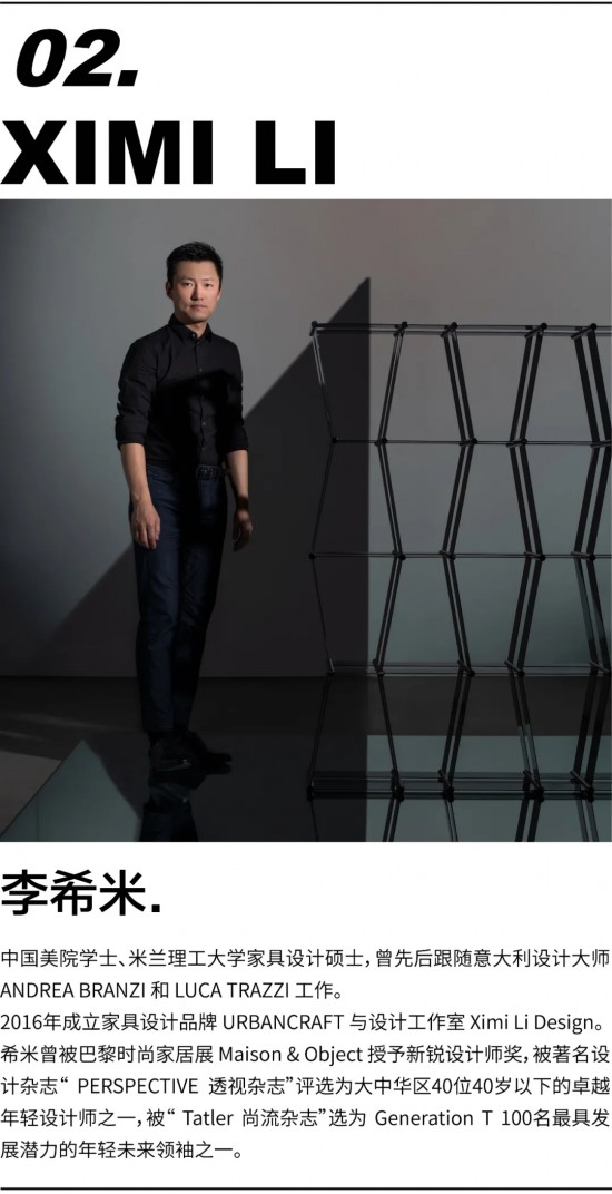 L:今年深圳時(shí)尚家居設(shè)計(jì)周一共有 14 個(gè)展館,其中 6 個(gè)是設(shè)計(jì)導(dǎo)向的主題館。當(dāng)深圳時(shí)尚家居設(shè)計(jì)周向我發(fā)出 11 號(hào)館的策展邀請(qǐng)時(shí),雙方的想法十分契合。我在意大利學(xué)習(xí)工作多年,2016年開(kāi)始經(jīng)營(yíng)自己的家具品牌 URBANCRAFT,并以設(shè)計(jì)工作室 Ximi Li Design 開(kāi)啟了與中國(guó)原創(chuàng)家具品牌的合作。從海外到國(guó)內(nèi),有幸經(jīng)歷了不同的審美與文化體系,同時(shí)也經(jīng)歷了兩國(guó)行業(yè)的多樣性。中國(guó)的現(xiàn)代家具設(shè)計(jì)行業(yè)才剛剛開(kāi)始,高速演化的社會(huì)進(jìn)程中,市場(chǎng)也隨之快速變化。展覽方身處行業(yè)里,同樣深深理解行業(yè)處于過(guò)渡期的痛點(diǎn),從他們的角度也更能理解許多制造商、品牌方對(duì)未來(lái)的考量。因此,我們希望所策劃的設(shè)計(jì)坐標(biāo)概念展,能在某種意義上有帶動(dòng)、引領(lǐng)的作用,希望這是一個(gè)有國(guó)際視野的展覽,可以被國(guó)內(nèi)摸索中的品牌所借鑒。