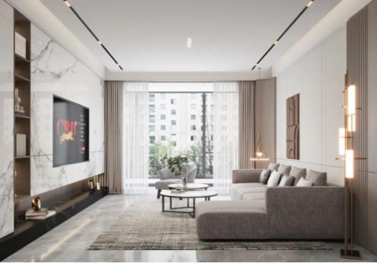 定制大理石背景墻,合理收納置物,視覺(jué)觀感更加整潔有序,雙色落地窗簾、吊燈、落地?zé)舻募映?,藝術(shù)氛圍感拉滿,居所獨(dú)有的愜意與浪漫悄然鋪陳,讓內(nèi)心回歸平靜。