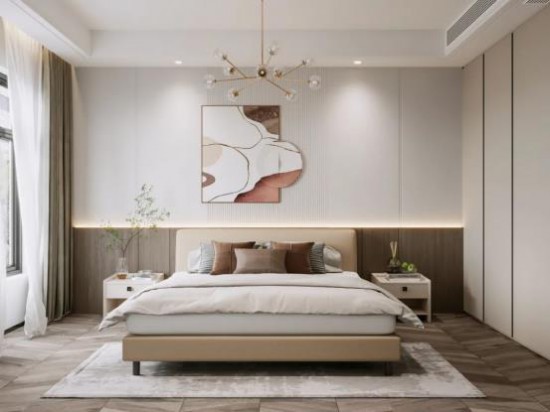 臥室注重與居主產(chǎn)生情感共鳴,藝術(shù)留白的格局設(shè)計(jì)更顯簡(jiǎn)約輕盈。木飾板墻面與綠植呼應(yīng),別有一番幽雅風(fēng)韻。