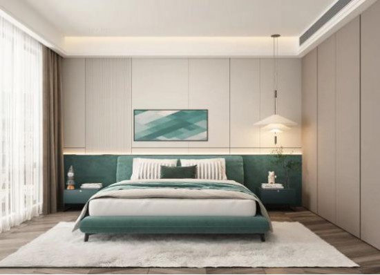 空間里的青綠色元素相得益彰,打造出靜謐宜人的休憩空間。線燈與吊燈代替主燈設(shè)計(jì),整體氛圍更加舒緩浪漫,無(wú)形中安撫居主心緒。CBD家居·黑金 | HZ032軟床,纖薄床身輕巧簡(jiǎn)約,放大空間感,舒享自在好眠。