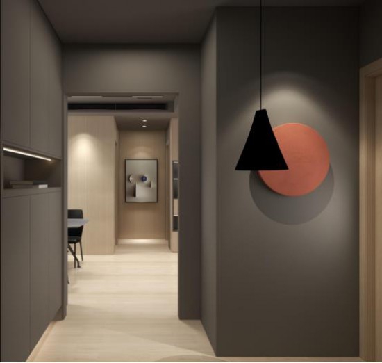 推開家門,深淺有致的灰度空間靜雅純粹,別有一番“留白”式藝術(shù)韻味,橘色墻飾與光呼應,散發(fā)浪漫氣息。隱藏式鞋柜設(shè)計,整潔大氣,節(jié)省空間也便捷生活。