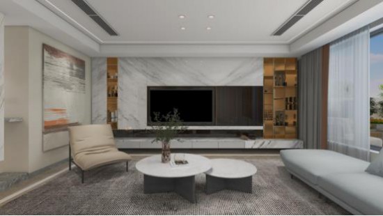 大理石元素成為空間的主導,飄逸自然的紋理營造高雅意境,定制電視背景墻,預留格間儲物,實用性與質感并舉,格調生活呼之欲出。