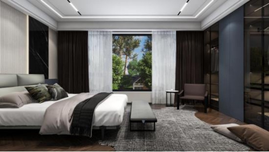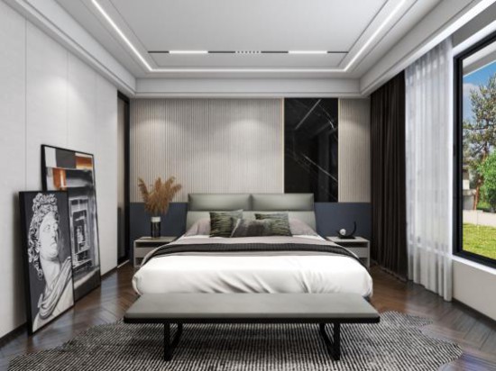 定制墻體隔斷出衣帽間,滿足日常生活所需,家具的裝飾上,CBD家居·黑金 | HG005軟床低調十足,簡練的線條構型呈現優(yōu)雅感,深淺不一的灰色過渡,顯現色彩美學,舒緩自然,格調自成。