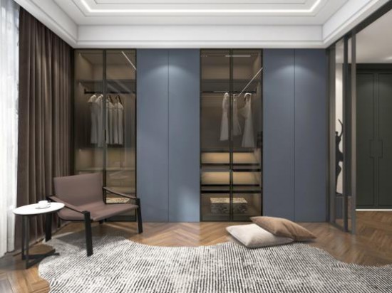 藏露得宜的定制柜設計,分區(qū)收納儲物完美體現實用性,深色透明玻璃簡約而不失美感,讓空間通透性十足,打造獨特的視覺體驗。