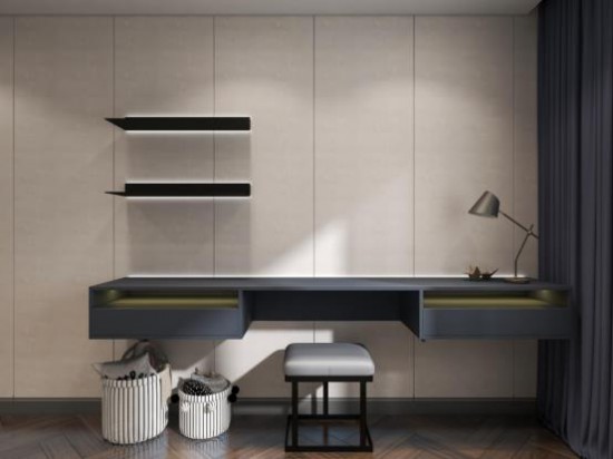 懸空書桌與儲物架設計更顯輕盈,增強布局的層次感和實際功能性,打造出整潔干凈的居家學習空間。