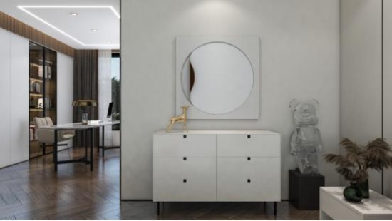 保留原始格局,空間觀感自然敞闊,灰色的主基調營造寧靜、內斂的氛圍感,一大面定制入墻柜無過多贅飾 ,增加整體精致度,一展簡潔明朗的生活態(tài)度。