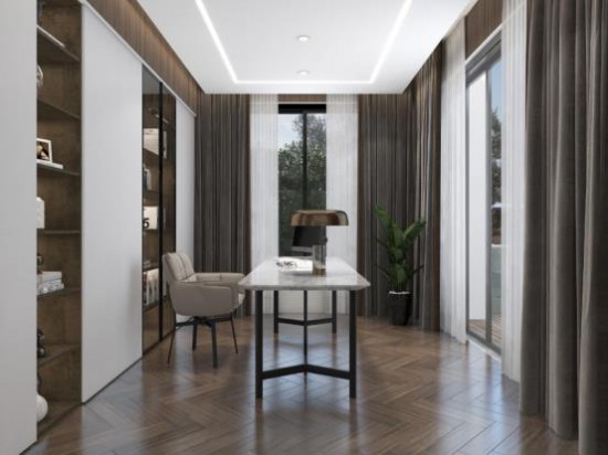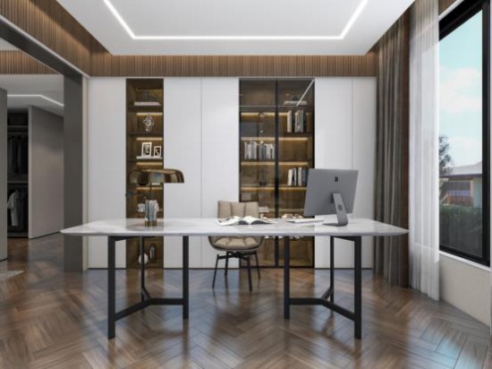 書房與臥室相鄰,不做墻面隔斷,保持獨立也實現交互,空間更顯敞亮大氣。