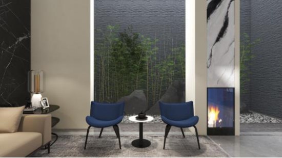 室外打造綠植景觀,竹石相映成趣,構筑人與自然的和諧共生的人居環(huán)境。CBD家居·黑金 | HZ209單椅,藍色調優(yōu)雅高貴,精巧之姿裝飾空間,也自成舒適一角。