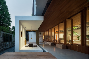 “木材其實(shí)是空間中的特殊界面,新老結(jié)構(gòu)的分界、室內(nèi)室外的分界、人行走和停留的分界,都可以與它有關(guān)。”對于木材的定位及運(yùn)用,金鑫有著自己的理解,“結(jié)合美國櫻桃木自身的特性,它用于結(jié)構(gòu)構(gòu)件和裝飾構(gòu)件都很出色。自然的紋理、自帶的木頭香氣,都會(huì)給人一種溫暖的感覺。”