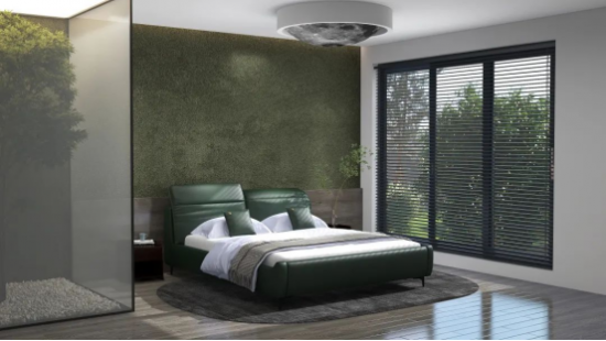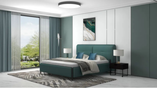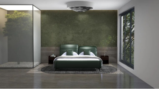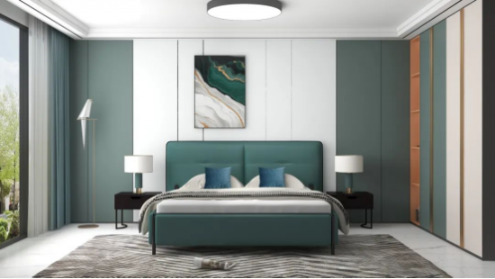 深綠泛青謂之蒼綠,色調(diào)溫雅平和,為臥室?guī)盱`動(dòng)的自然意趣,與同為綠色系的背景墻呼應(yīng),更添雅致。
